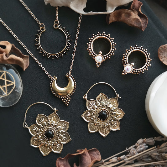 Golden Onyx Lotus Hoops