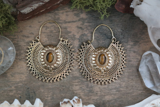 Mandala Labradorite Brass Hoops