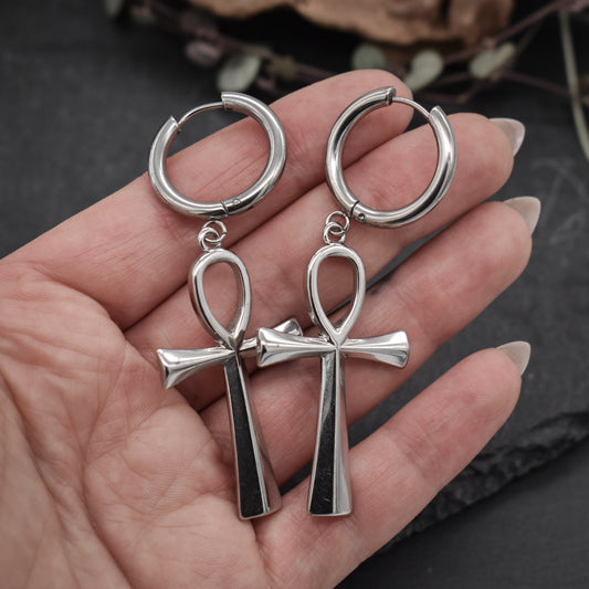 Silberne Ankh Hoop Ohrringe