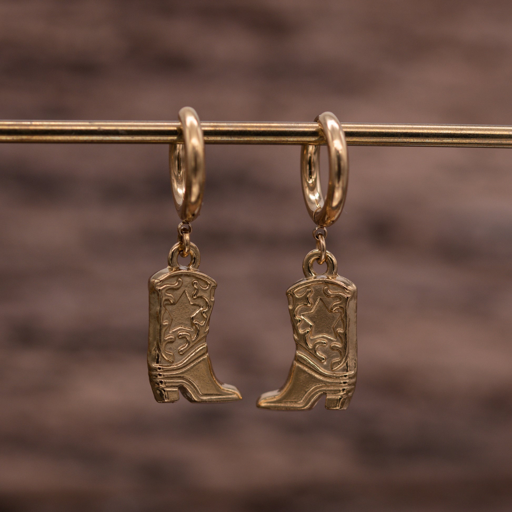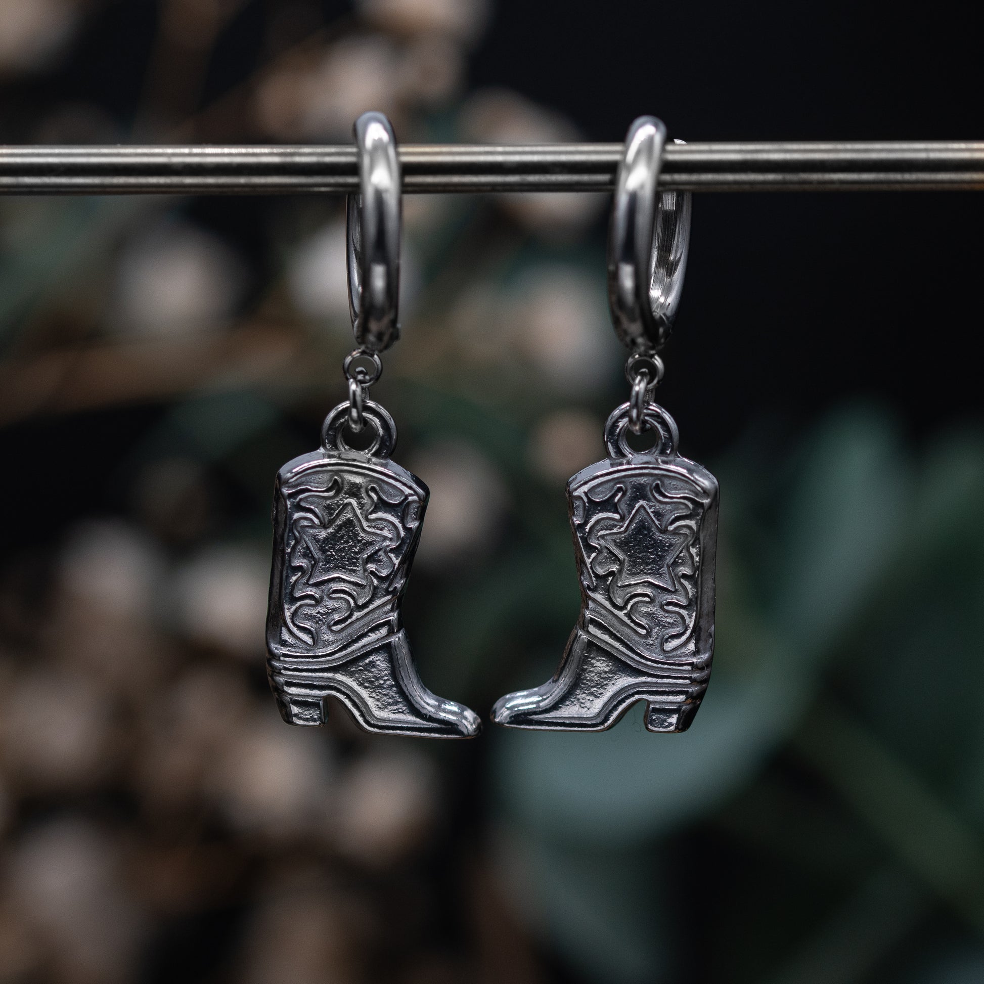 Upgrade your jewelry collection with these unique Cowboy Boots Huggie Earrings, made of durable stainless steel. The huggie earrings fit standard pierced ears and are also wearable through flesh tunnels or saddle spreaders.