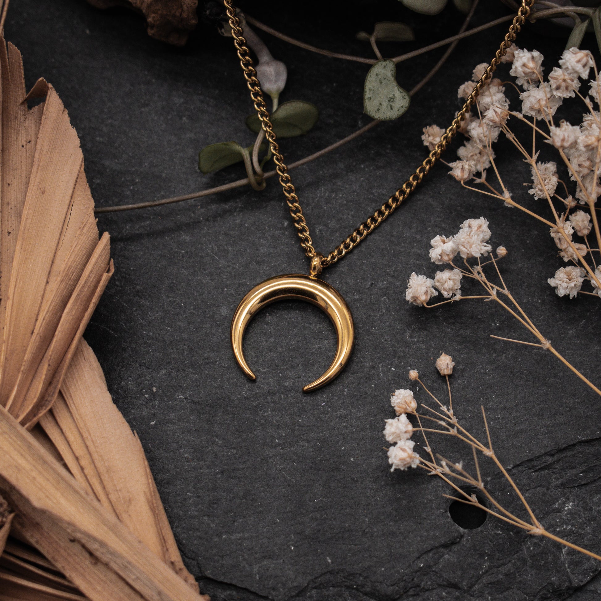 Die Crescent Moon Halskette besteht aus hochwertigem, anlaufbeständigem Edelstahl. Das minimalistische Design macht sie perfekt für den täglichen Gebrauch oder zum Kombinieren mit anderen Ketten. Hypoallergen, langlebig und zeitlos. Erhältlich in Silber oder Goldfarbend.