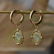 Die goldenen Aventurin Hoop Ohrringen geben deinem Outfit einen eleganten Look. Hergestellt mit weißen Jade Steinen und Edelstahl. Die Ohrringe passen standard Ohrlöchern und können auch durch Tunnel oder Saddle Spreader getragen werden.