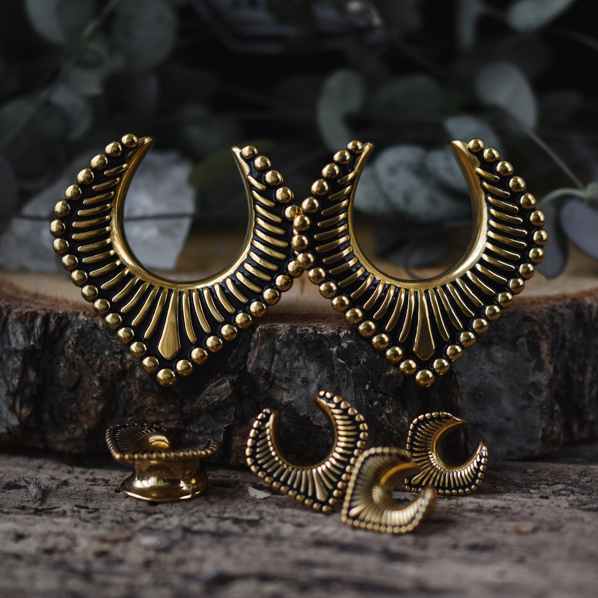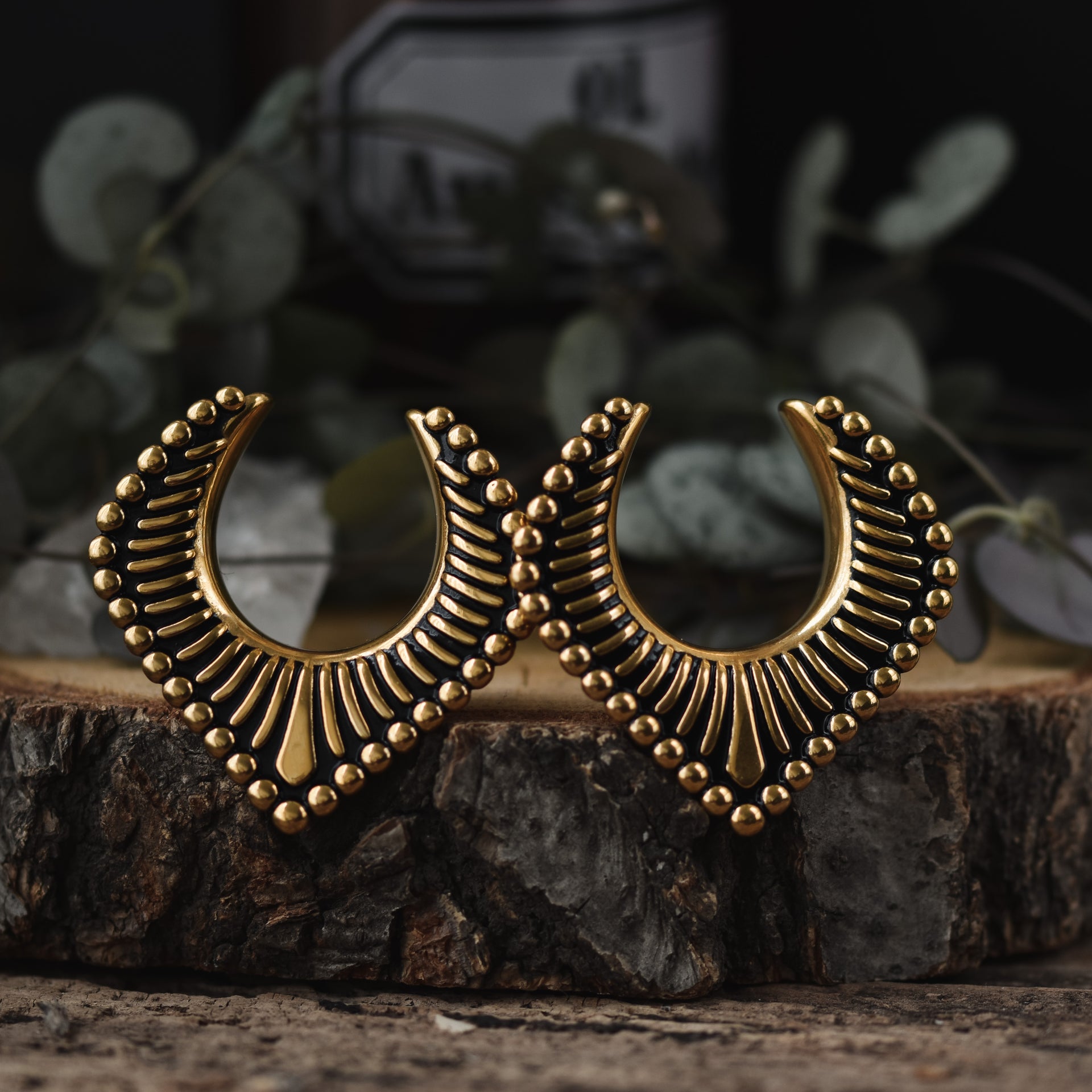 Goldene Dreieck Saddle Spreaders für gedehnte Ohrlöcher. Tragbar mit einer Mindestgröße von 8 mm | 0g und größer. Auch erhältlich in Silber.