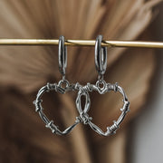 Mach deinen Look komplett mit diesen silbernen Stacheldraht Herz Ohrringen. Die Huggie Hoop Ohrringe passen standard Ohrlöchern und können auch mit Tunnel oder Saddle Spreader kombiniert werden. Preis pro Paar.