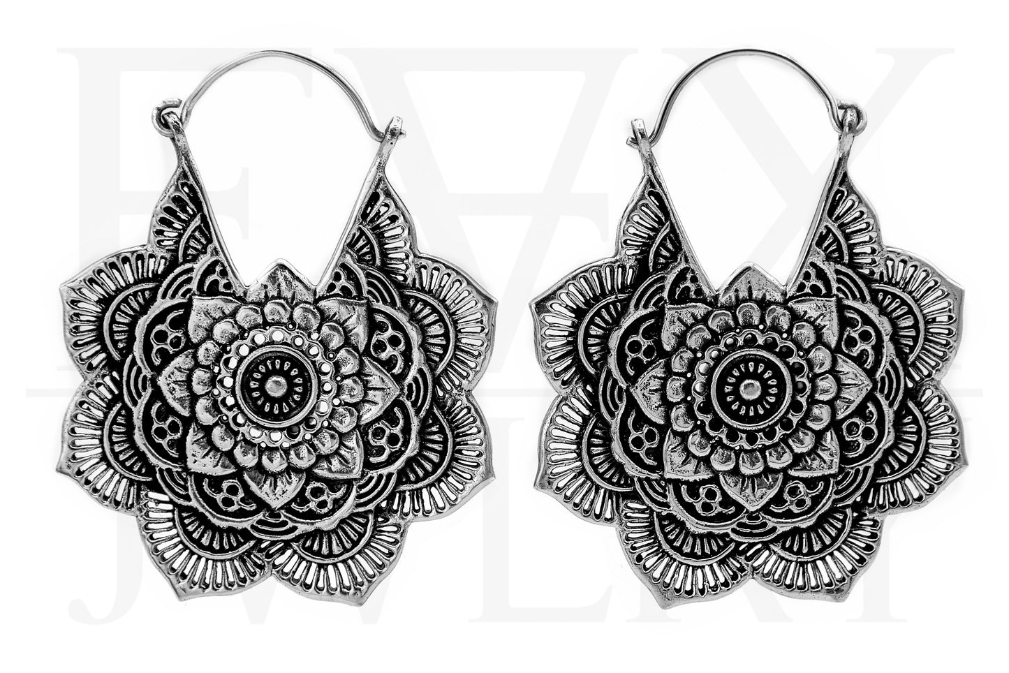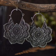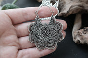 Silver Mandala Flower Earrings