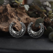 Silver Moon Tribal Saddle Spreaders for stretched ear lobes. Detailed beaded and hammered design ispired by tribal jewelry. Wearable with size 12 mm | 1/2" and above.