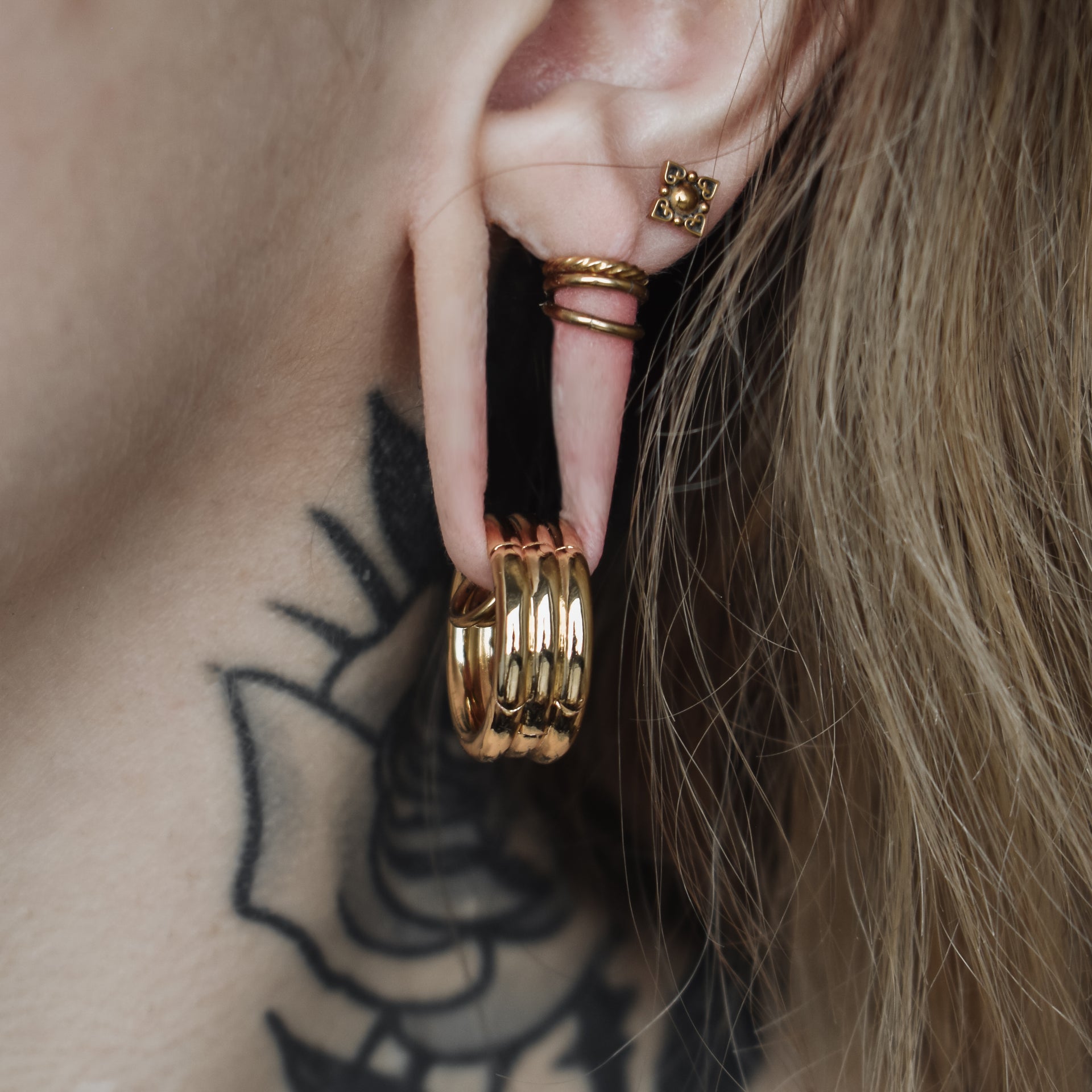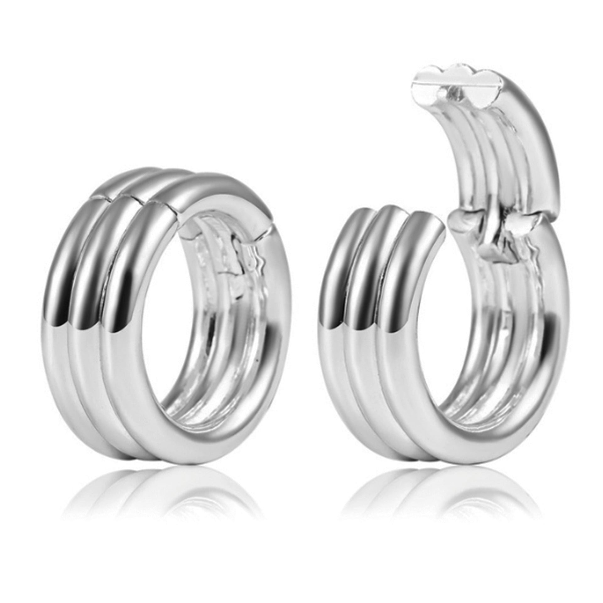 Silver Multi Ring Clicker Ear Weights for stretched lobes with clicker closure. These clickers can fit stretched ears starting at least 8 mm | 0g and bigger.