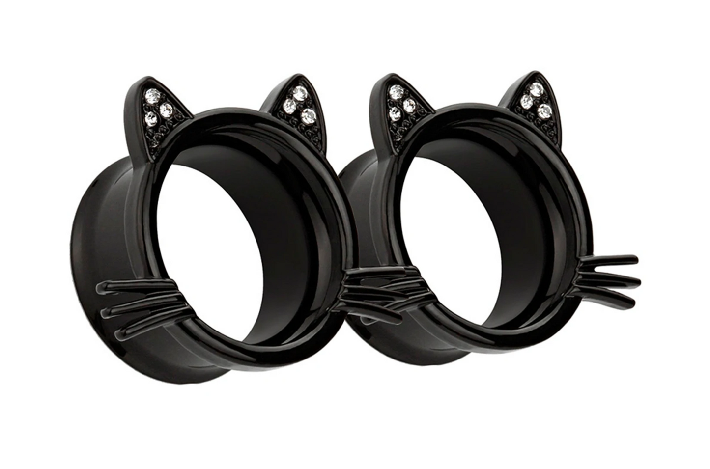 Black Kitty steel tunnels with crystals and cute little whiskers.