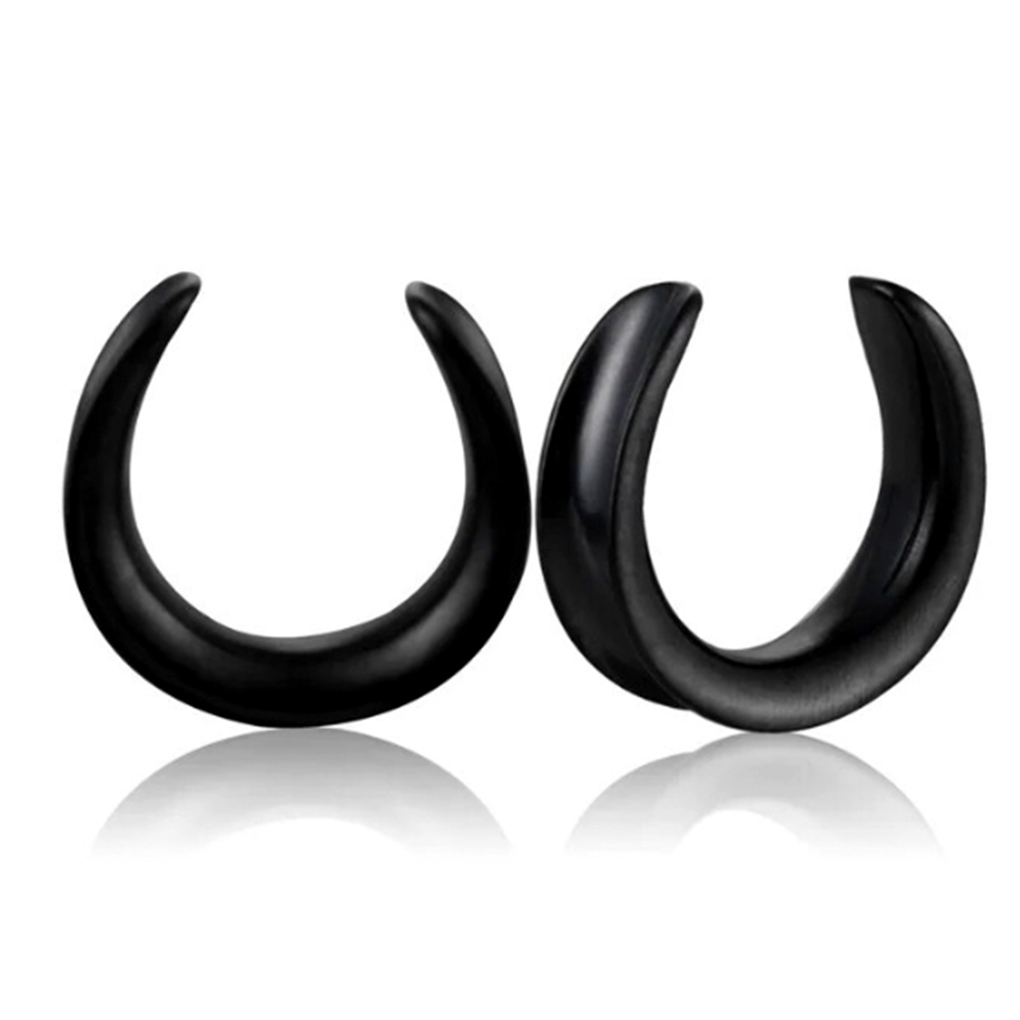 Black Saddle Spreaders for stretched lobes. These are high quality stainless steel basics and great for everyday wear. No tarnish and skin friendly. Wearable with minimum size 8 mm | 0g and above. Also available in gold, silver and rose gold.