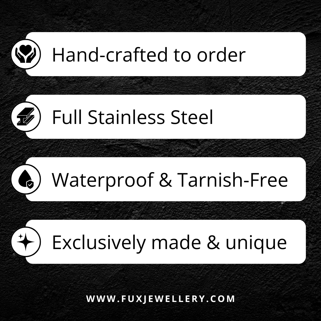 Unleash your inner warrior with this Chunky Battle Axe Necklace! Made from 100% stainless steel materials, it's hand-assembled and designed to last. The adjustable lobster claw clasp and O-ring make it perfect for any style. Get ready to conquer with this bold and heavy metal piece.