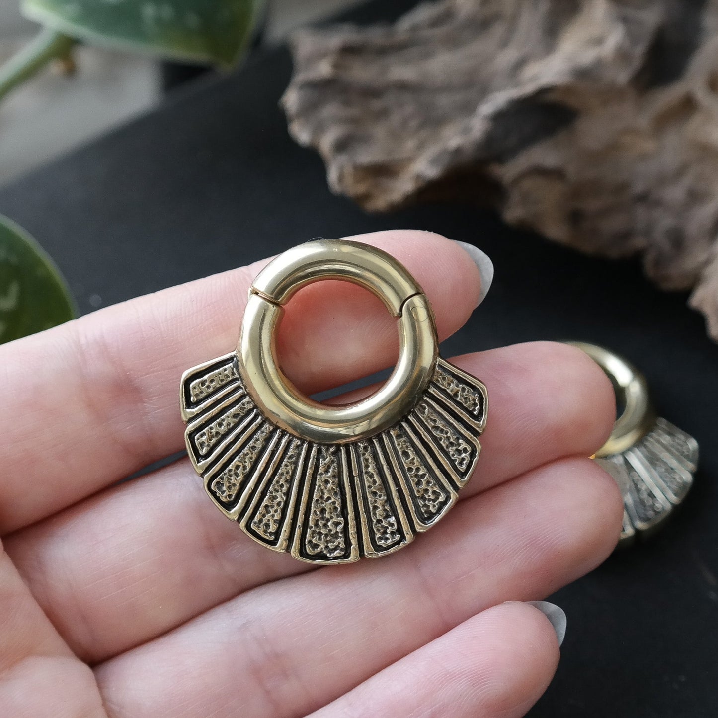 Golden Aztec Clicker Weights for stretched lobes with clicker closure. These hangers can fit stretched ears starting at least 5 mm | 4 g and above.