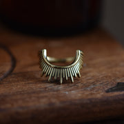 Golden Halo Ring with sun ray design. Perfect for stacking different rings. Matching earring hoops also available.