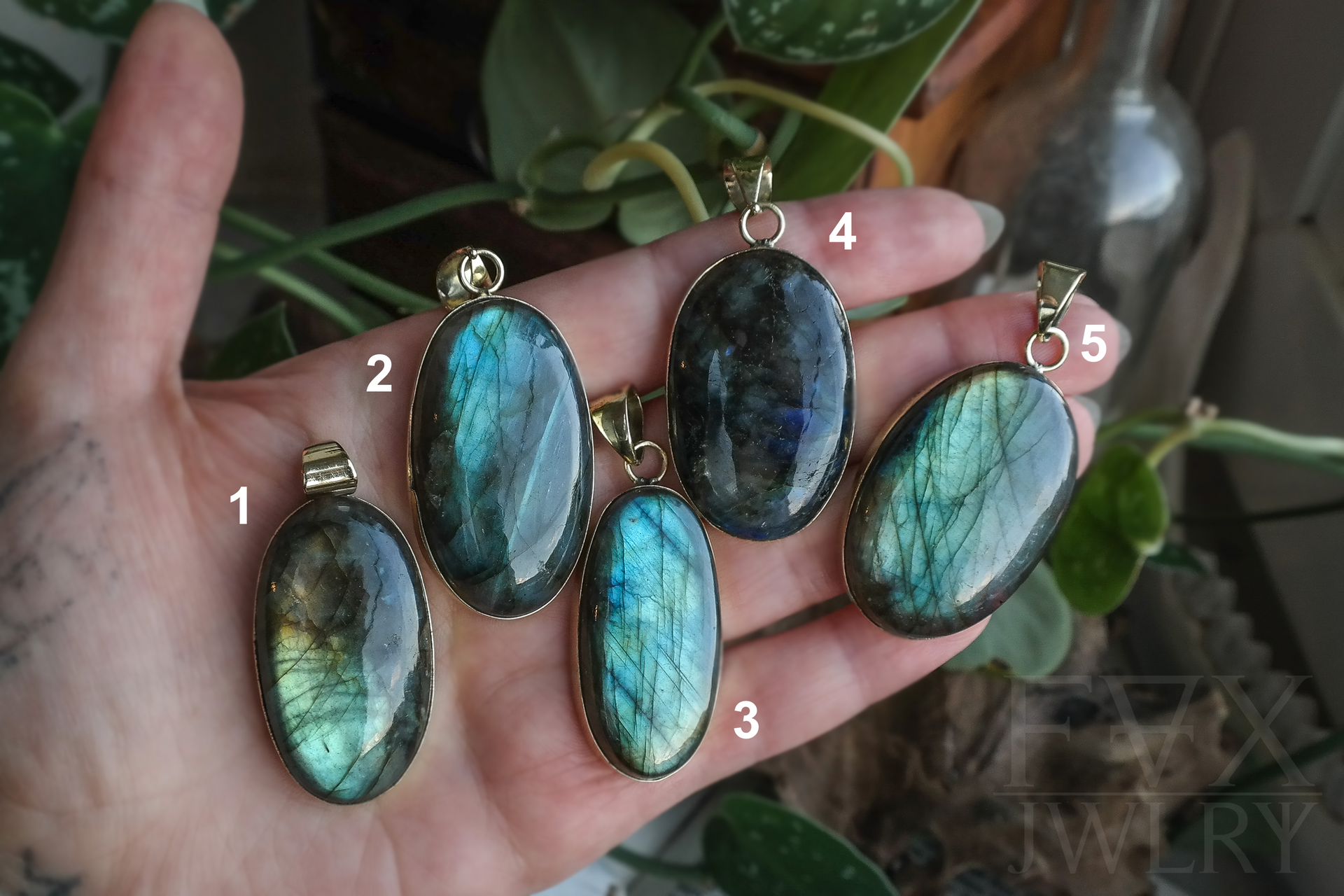 Simple golden setting with shiny high quality labradorite. Combined with a golden stainless steel chain. Every pendant is unique. You get the exact stone you choose.