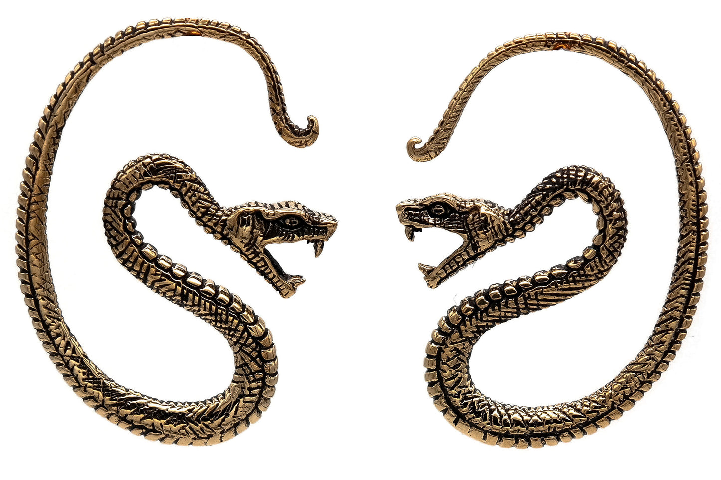 Antique Golden Serpent Ear Weights for stretched lobes. Very detailed double side design. These hangers can fit stretched ears starting at least 3 mm | 8g and above. Also available in silver.