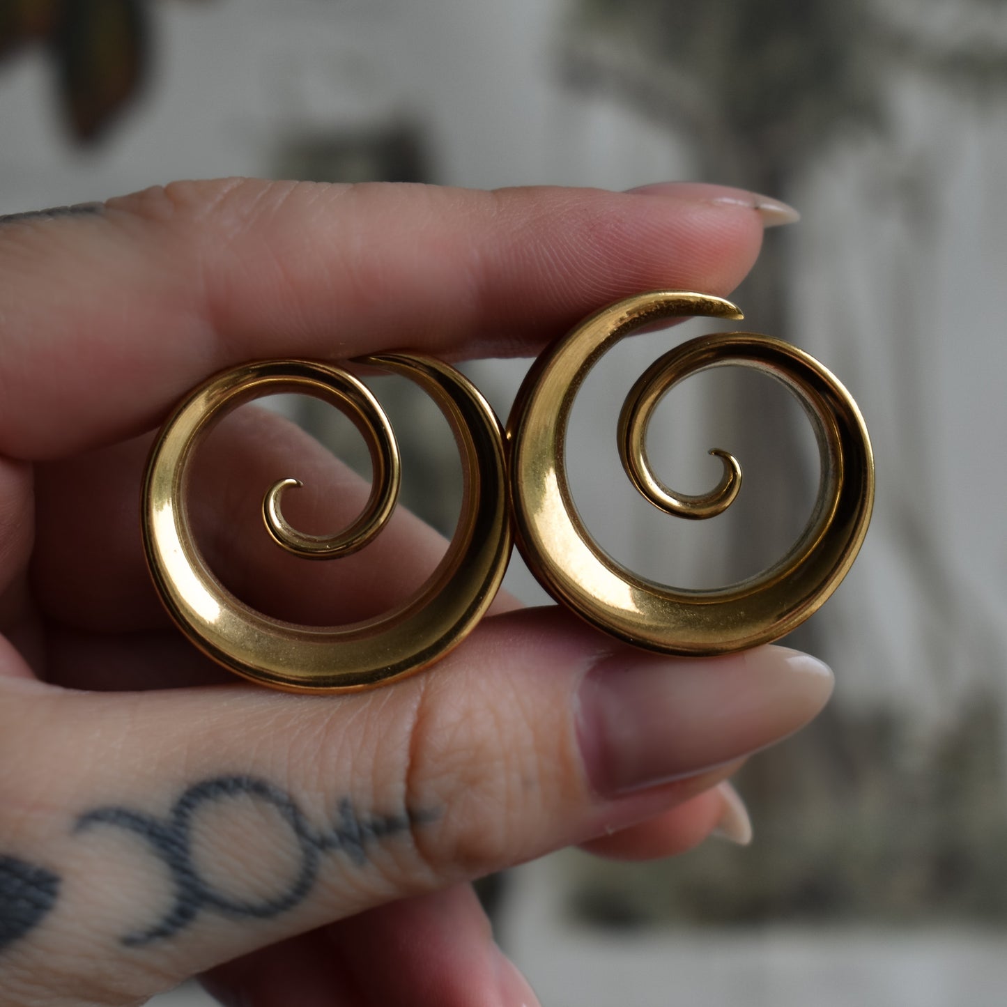 Golden Swirl Tunnels for stretched ear lobes. Also available in silver.