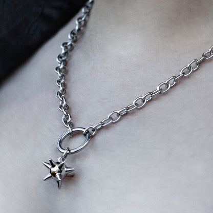Silver Medieval Flail Necklace, made with stainless steel chunky chain and o-ring. Hand-assembled and designed to last.