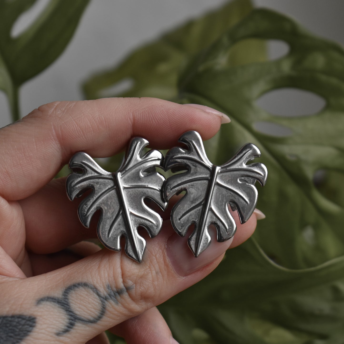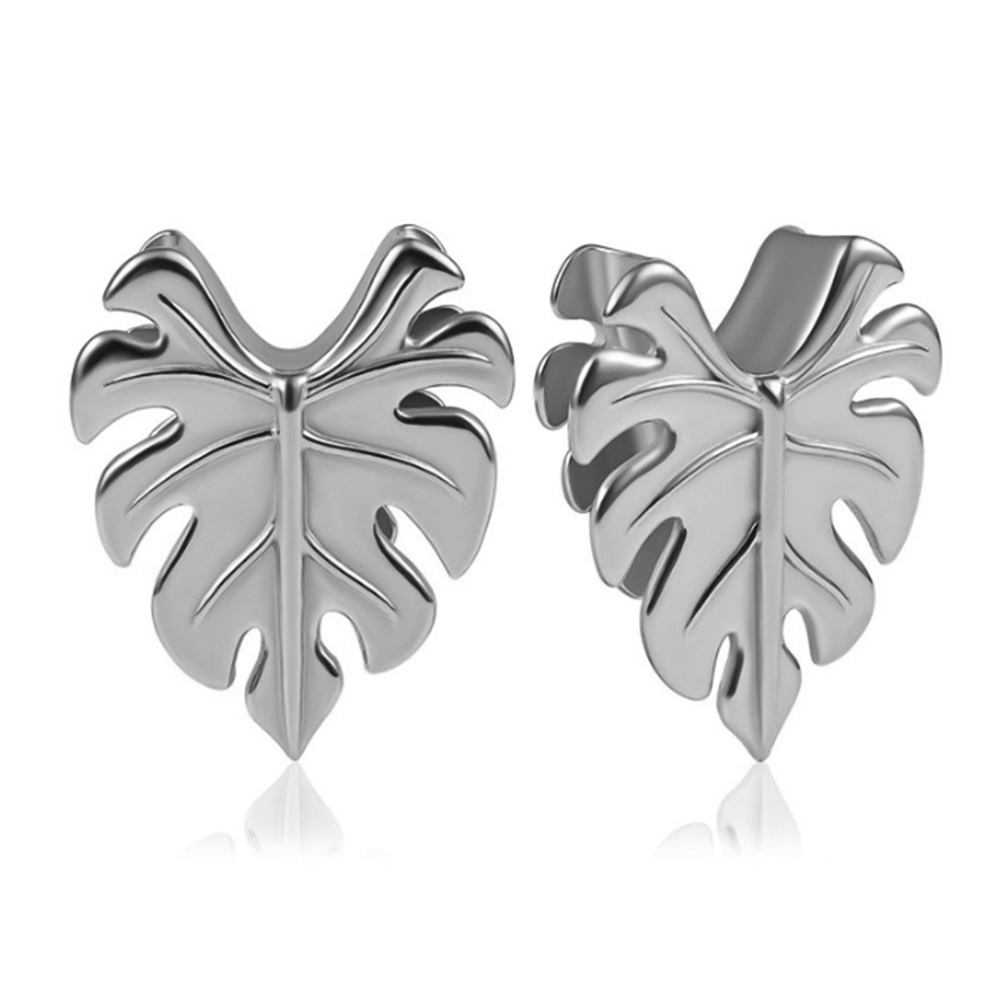 These silver Monstera Deliciosa leaf saddle spreaders are designed for stretched ear lobes. They feature a tropical monstera leaf design and are a unique and stylish addition to any jewelry collection. Wearable with size 8 mm | 0g and above. Also available in gold.