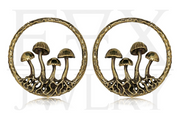 Antique golden mushroom clicker ear weights for stretched lobes. High detailed mushroom design on both sides. These hangers can fit stretched ears starting at least 4 mm | 6 g and above. Also available in silver.