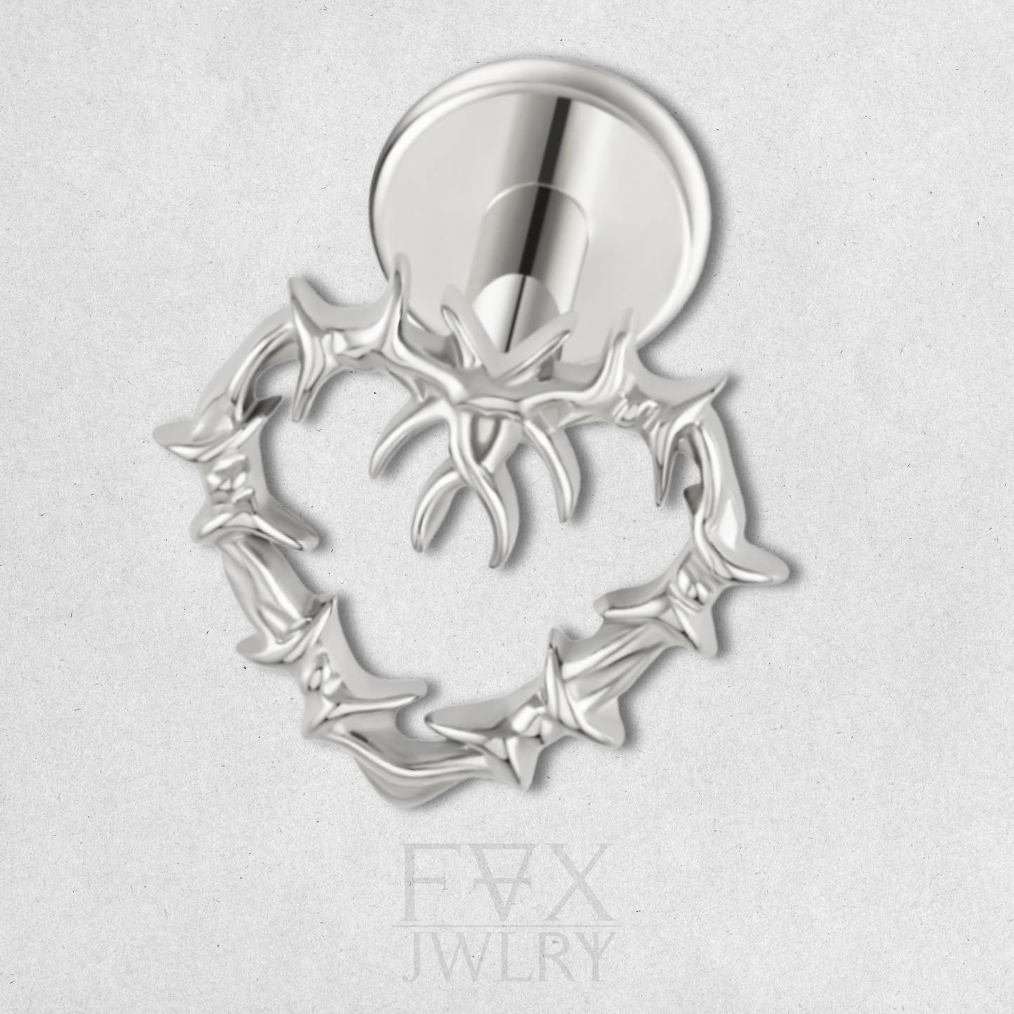 Silver Barbed Wire Heart Piercing Stud. Suitable for piercings including ear lobe, Tragus und Flat and more.