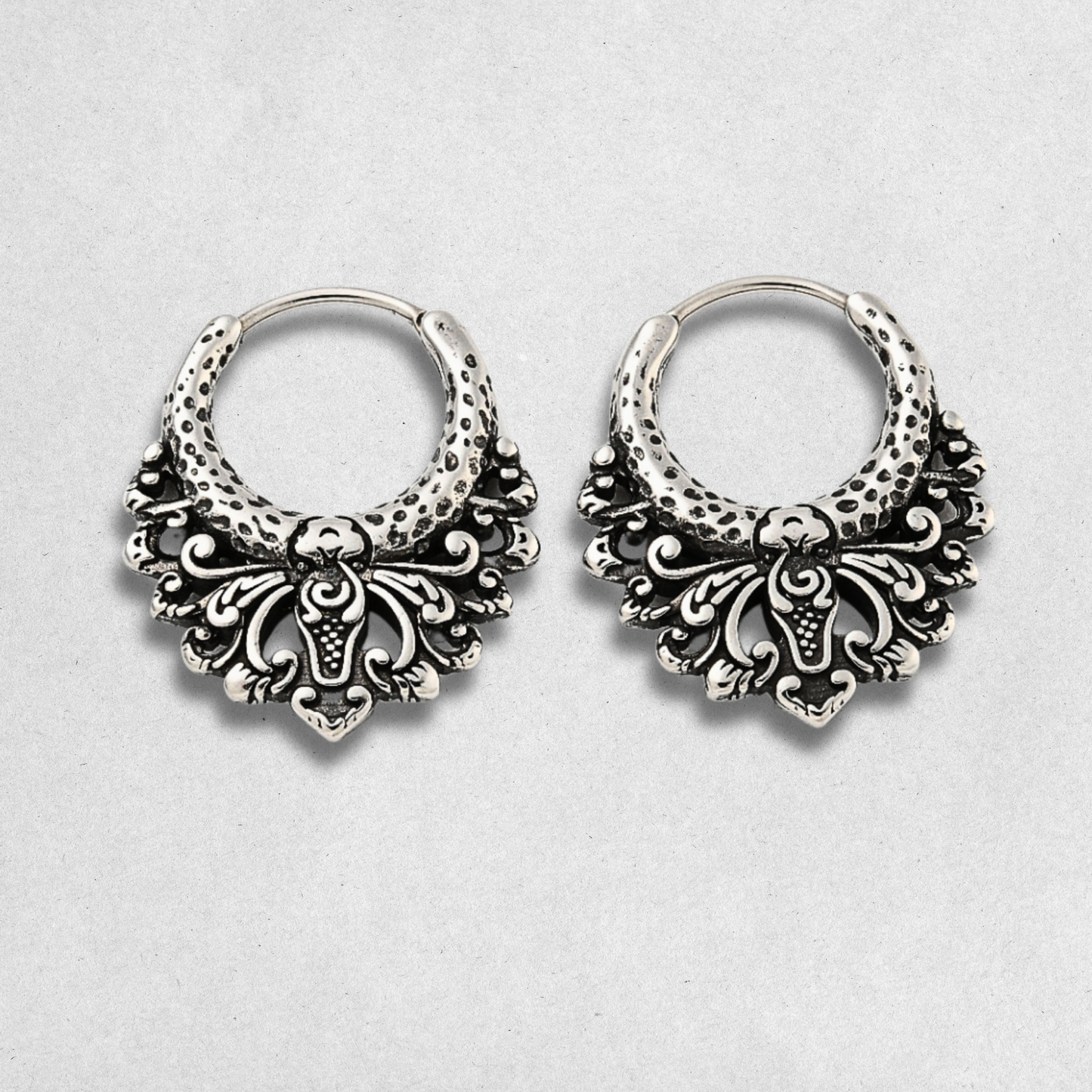 Silver Baroque Hoop Earrings made of high quality 316 stainless steel with opulent baroque style.