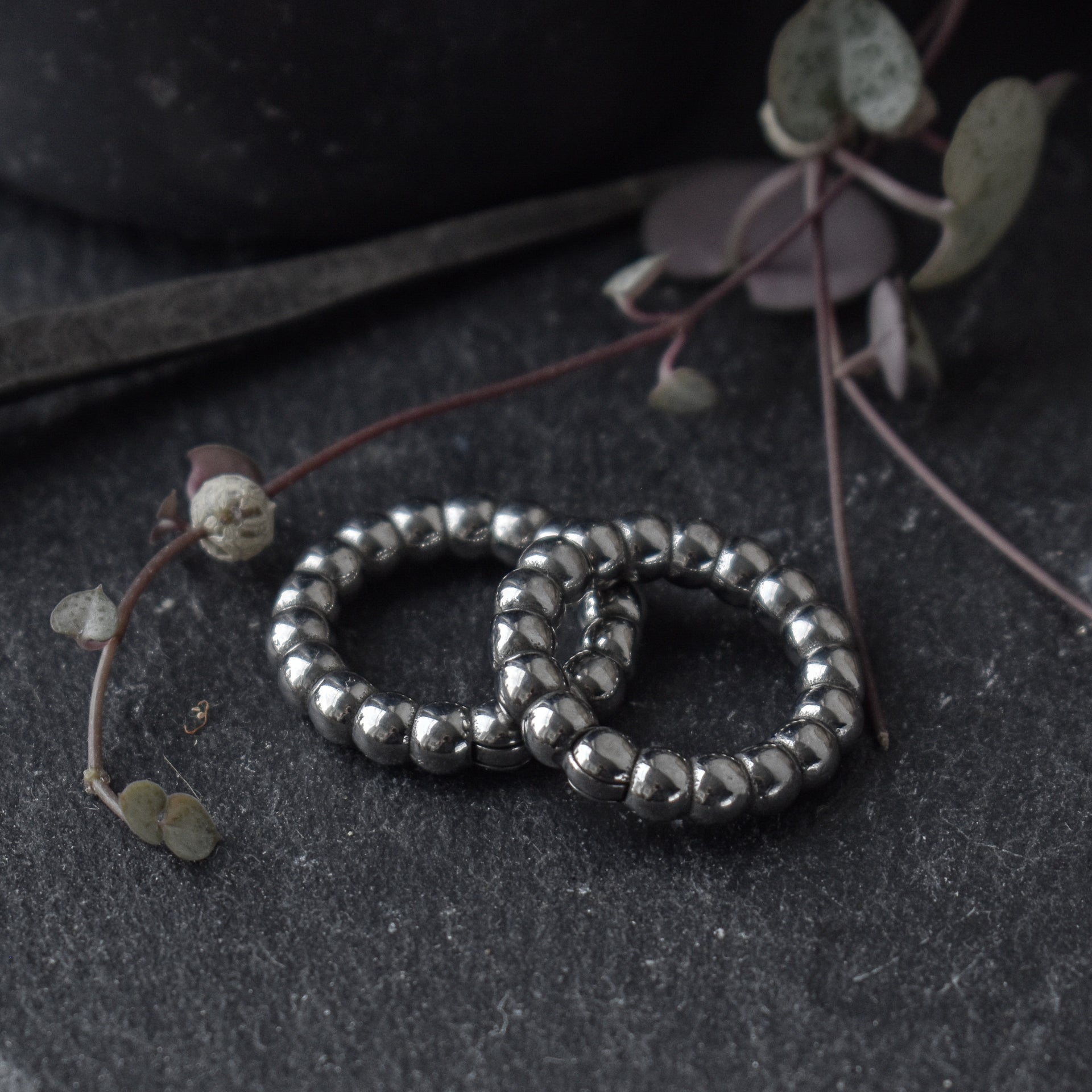 Silver Beaded Hoop Ear Weights with magnetic closure. They fit stretched ears starting at least 5 mm | 4 g and above. Wearable through flesh tunnels and saddle spreaders. Also available in gold.