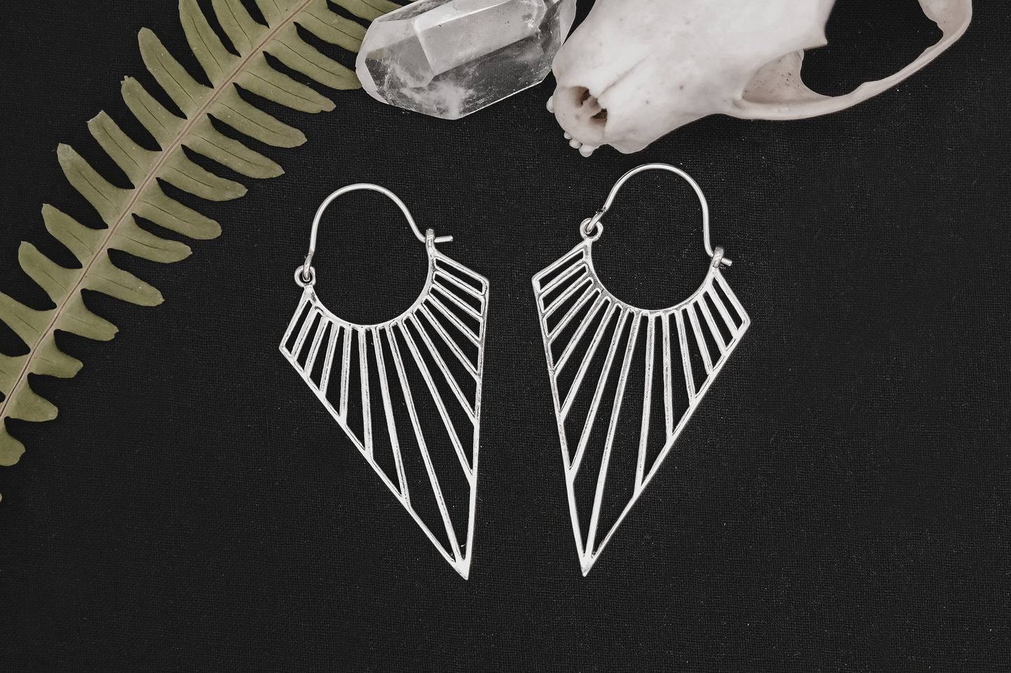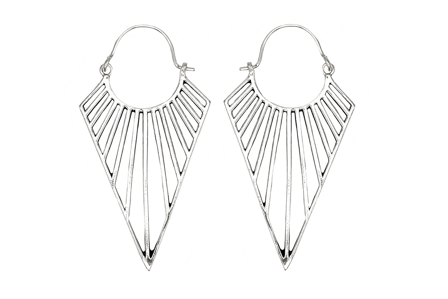 Silver Pointed Triangle Hoops. Silver polished white brass earrings. High quality geometric triangle design. They fit comfortable through any flesh tunnel and can be worn like normal earrings. Also available in gold.