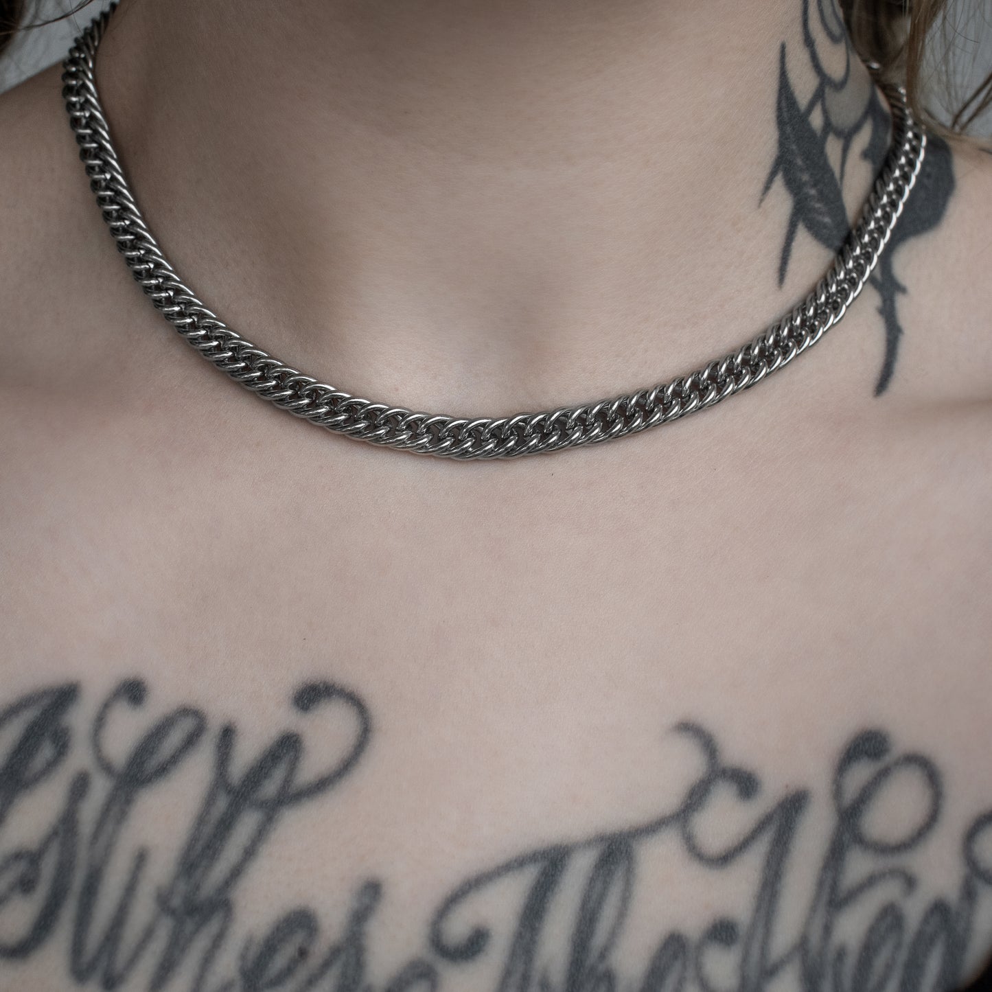 Add a modern and edgy touch to your outfit with this Stainless Steel Chain Maille Choker. Made off 304 stainless steel this comfy choker offers a basic chain maille look that is simple and versatile. It's perfect for layering and made to wear every day.